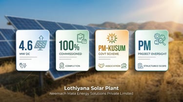 Located in Lothiyana, the project has been planned and executed with a long-term performance-oriented approach, recognizing solar power plants as enduring energy assets rather than one-time construction activities. From early-stage coordination to commissioning, a strong emphasis was placed on execution discipline, quality assurance, and adherence to regulatory and scheme-specific guidelines.
